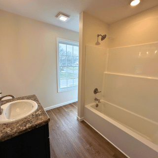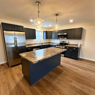 This newly constructed 1,638 square foot, three-bedroom, two and one half-bathroom home features a sprawling front porch, spacious open concept living, dining, and kitchen area, first-floor laundry, second-floor bedrooms, and a detached two-car garage. The full basement is both waterproofed and insulated. Refrigerator, range, microwave range hood, dishwasher, washer, and dryer are included with purchase. Concrete driveway installation and grading and seeding of yard to be completed by builder as soon as weather allows.
