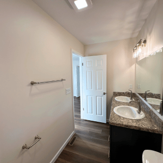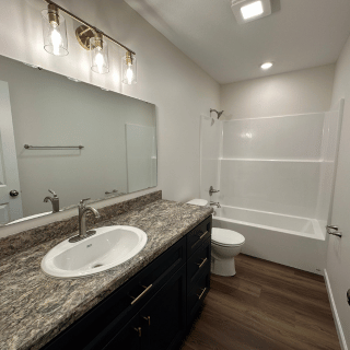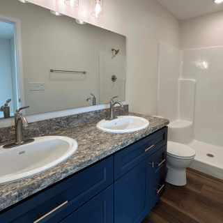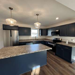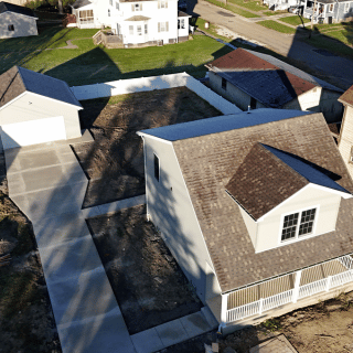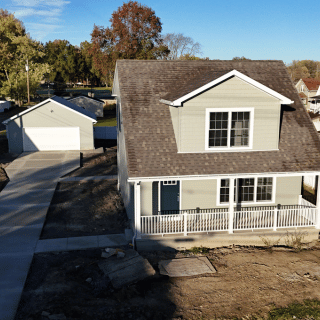 This newly constructed 1,509 square foot, three-bedroom, two and one-half bathroom home features a sprawling front porch, spacious open concept living, dining, and kitchen area, first-floor laundry, second-floor master suite, and a detached two-car garage. The full basement is both waterproofed and insulated. Refrigerator, range, microwave range hood, dishwasher, washer, and dryer are included with purchase.