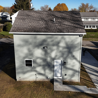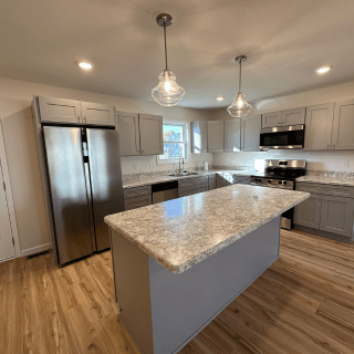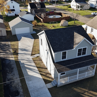 This newly constructed 1,409 square foot, three-bedroom, two-bathroom home features a sprawling front porch, spacious open concept living, dining, and kitchen area, first-floor laundry, and a detached two-car garage. The full basement is both waterproofed and insulated. Refrigerator, range, microwave range hood, dishwasher, washer, and dryer are included with purchase.