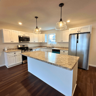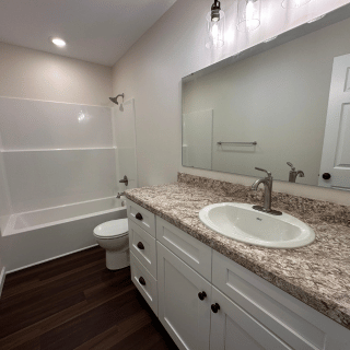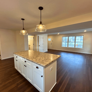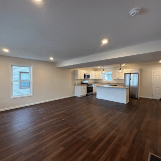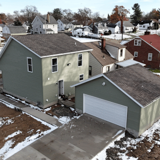 This newly constructed 1,509 square foot, three-bedroom, two and one-half bathroom features a sprawling front porch, spacious open concept living, dining, and kitchen area, first-floor laundry, second-floor master suite, and a detached two-car garage. The full basement is both waterproofed and insulated. Refrigerator, range, microwave range hood, dishwasher, washer, and dryer are included with purchase.